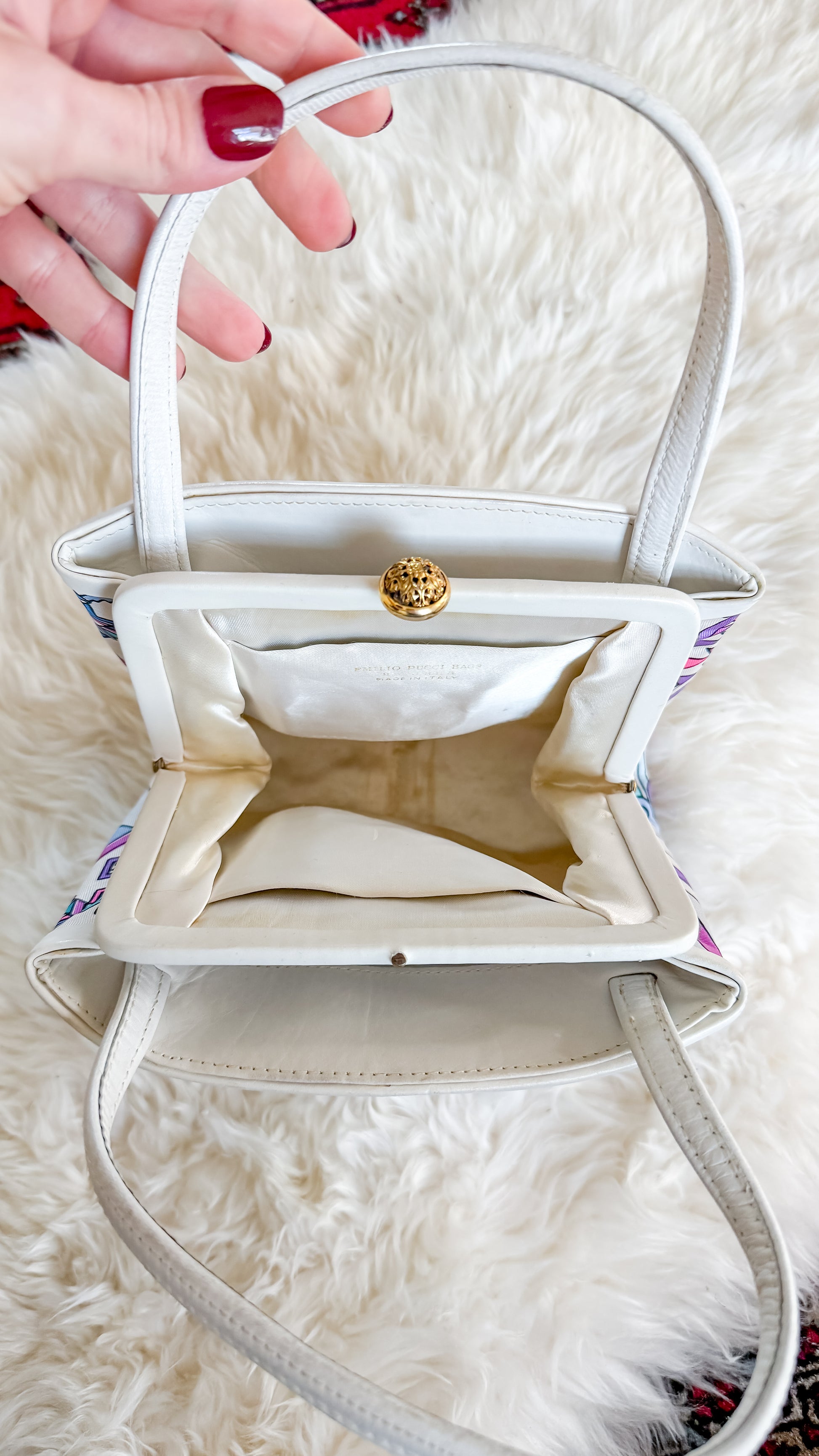 Super rare purse by Emilio Pucci by Jana from the 1960s! Made in Italy. 100% silk with leather trim and handles.