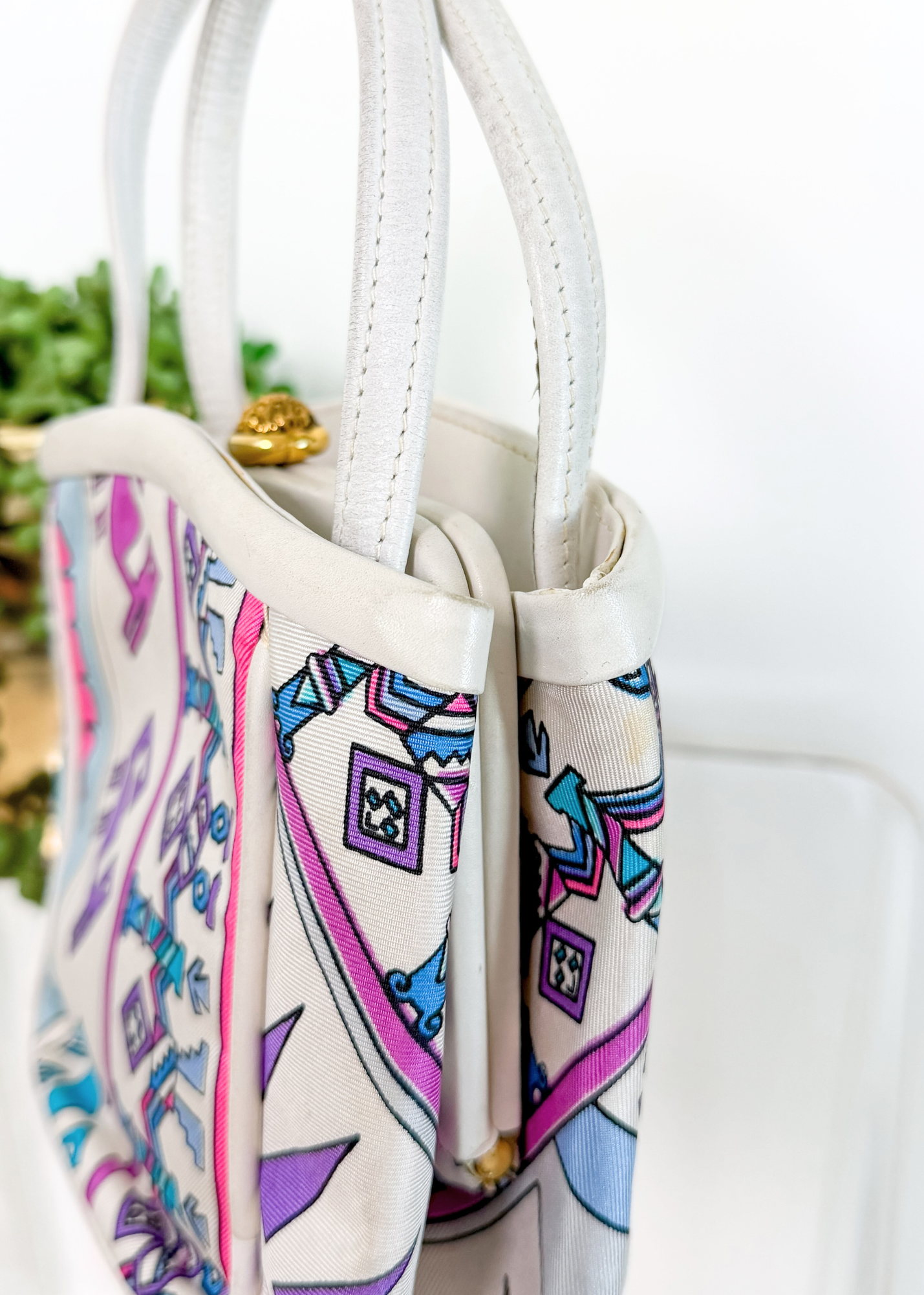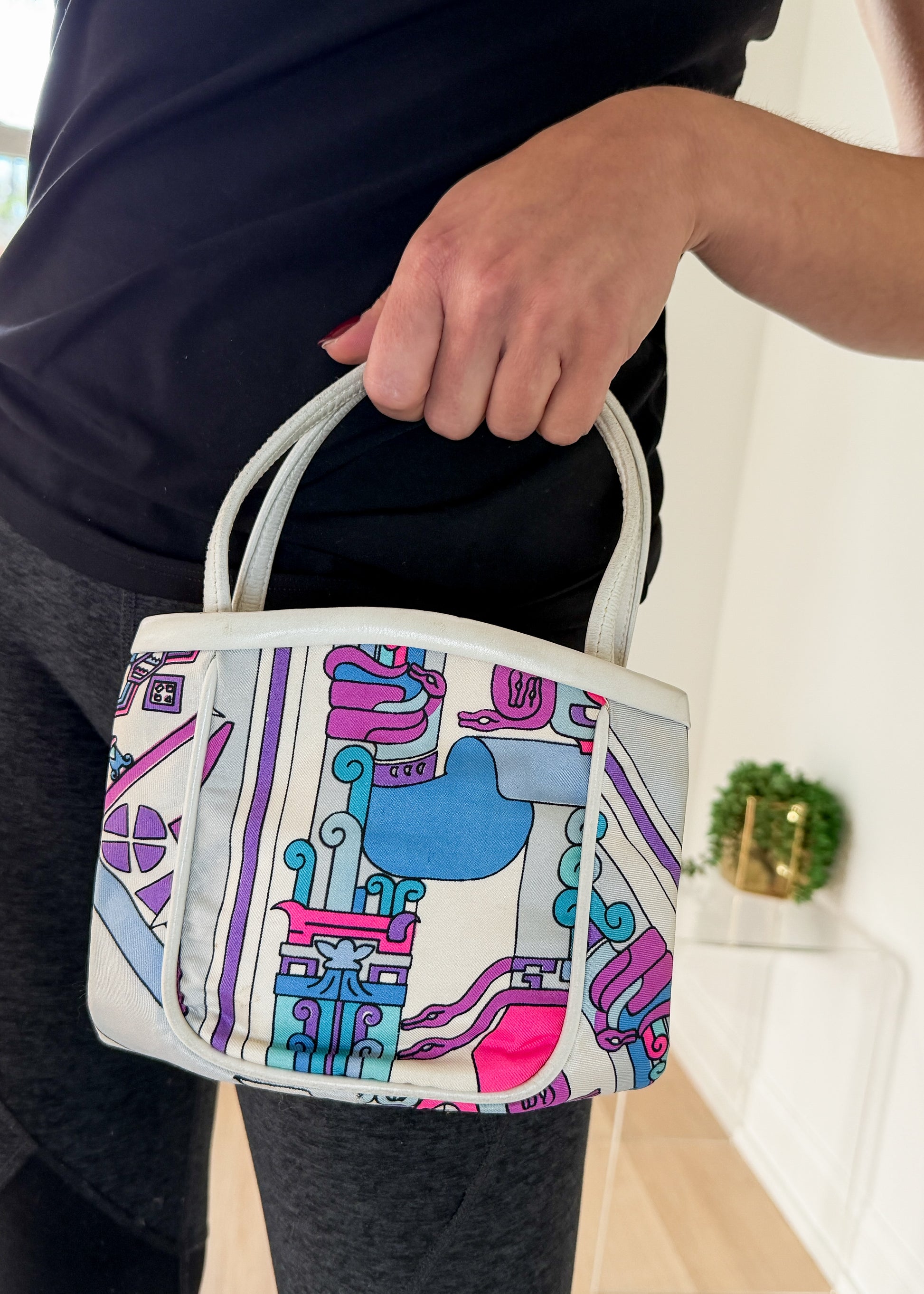 Emilio Pucci by Jana 1960s RARE Abstract Silk and Leather Top Handle Purse
