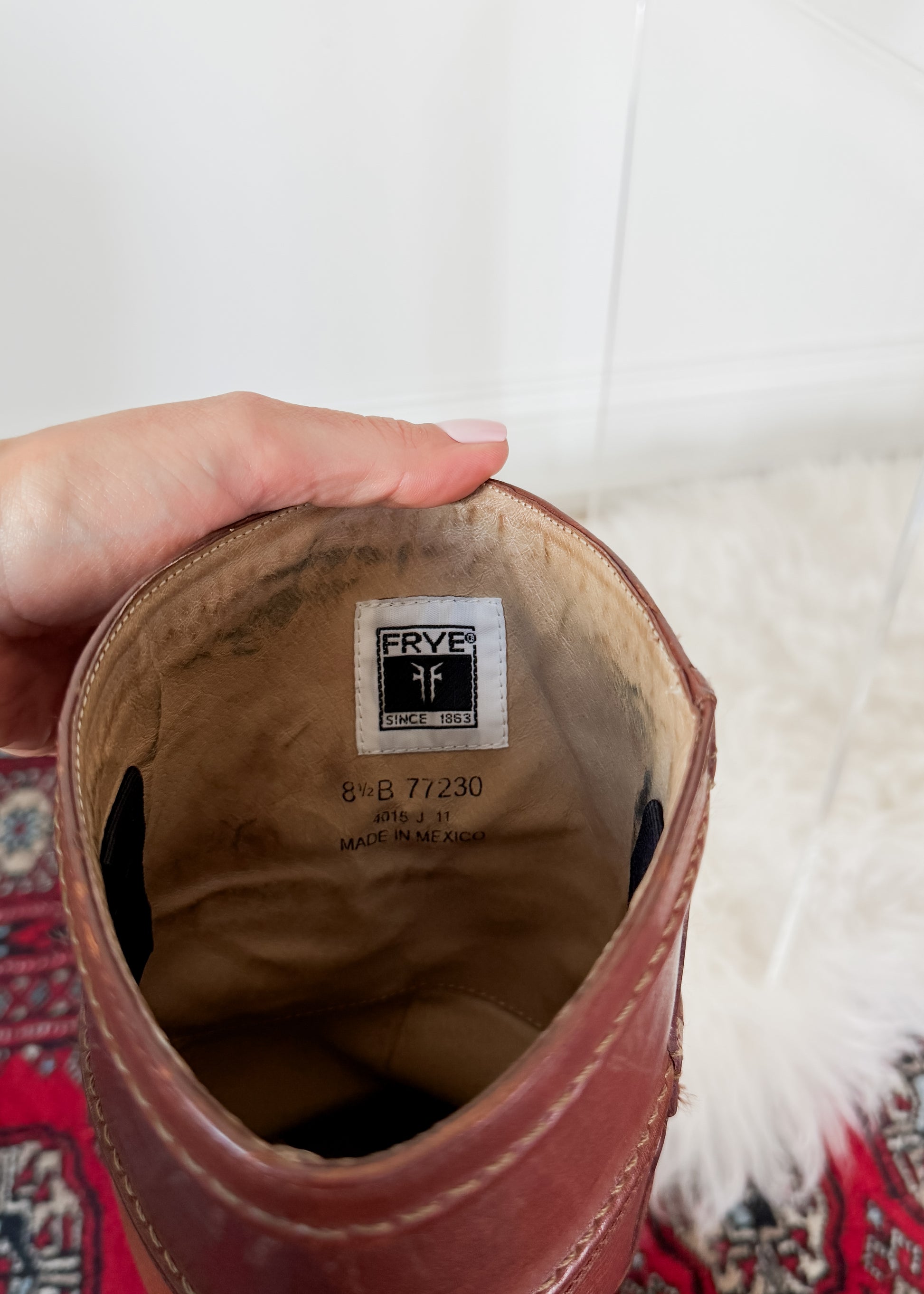 Gorgeous dark brown/Redwood leather boots from Frye style # 77230 in size 8.5 B.