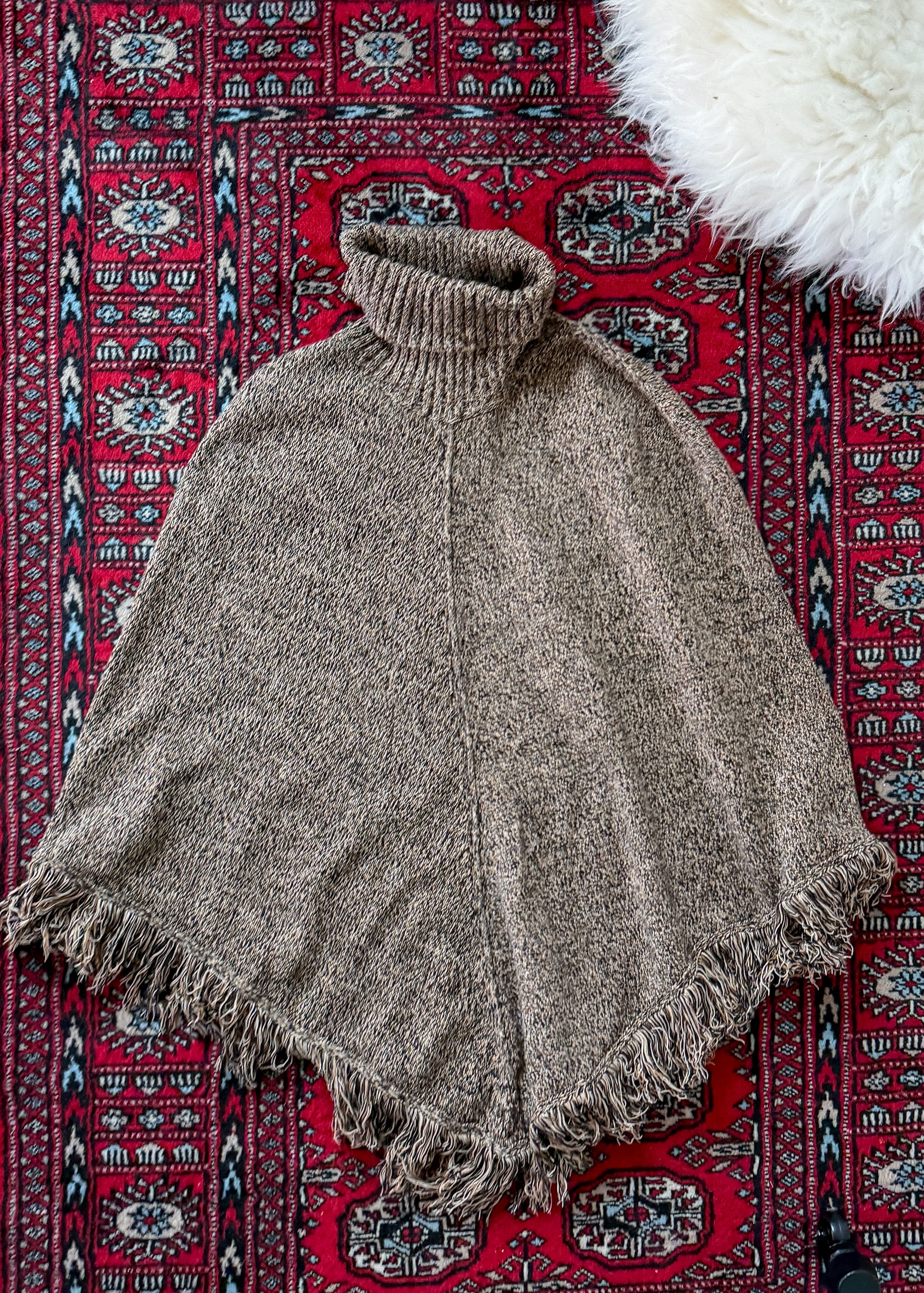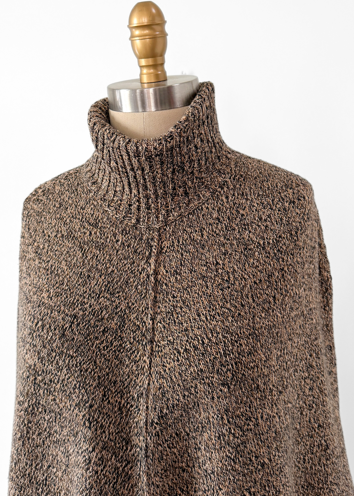 DETAILS: beautiful black and brown marled knit poncho sweater features fringe trim and a turtleneck style. Layer over anything from jeans to a dress!
