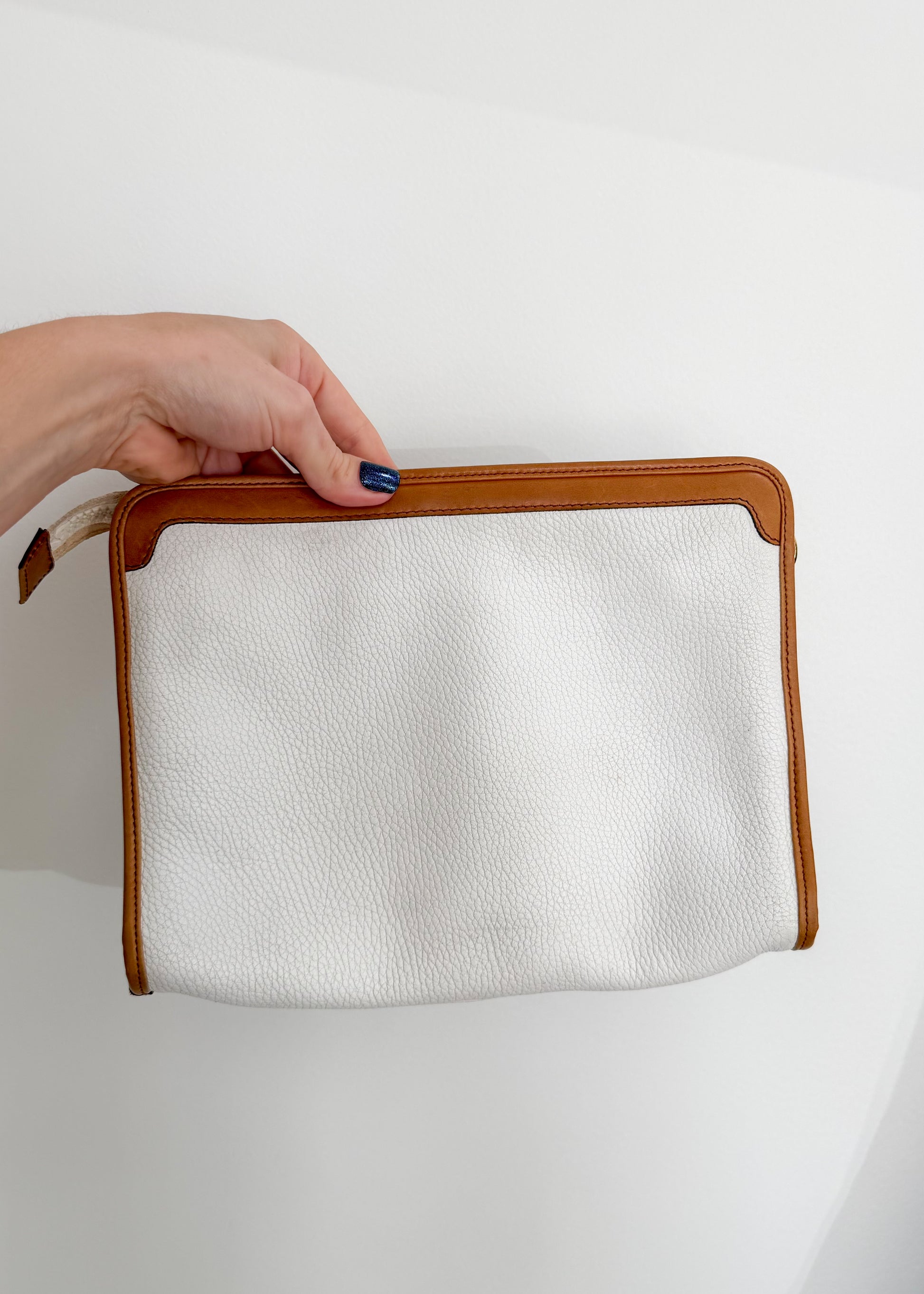 Vintage 80s Celine White & Brown Leather Pouch Clutch Purse